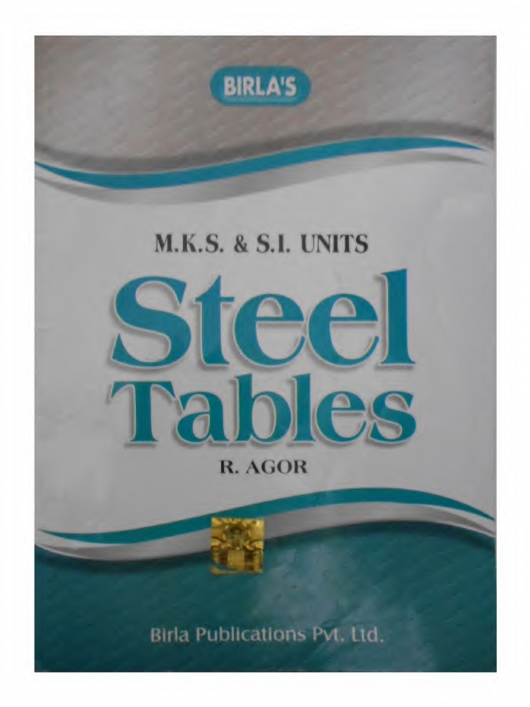 STEEL TABLES BY R AGOR BIRLA PUBLICATIONS FREE DOWNLOAD PDF Civilenggforall Item Preview remove-circle Share or Embed This Item. Visit the post for more. The book contains absolutely 33 parts there are Rolled steel equivalent edges Rolled steel inconsistent points Rolled steel tee bars Rolled steel pillars Rolled steel channels.
